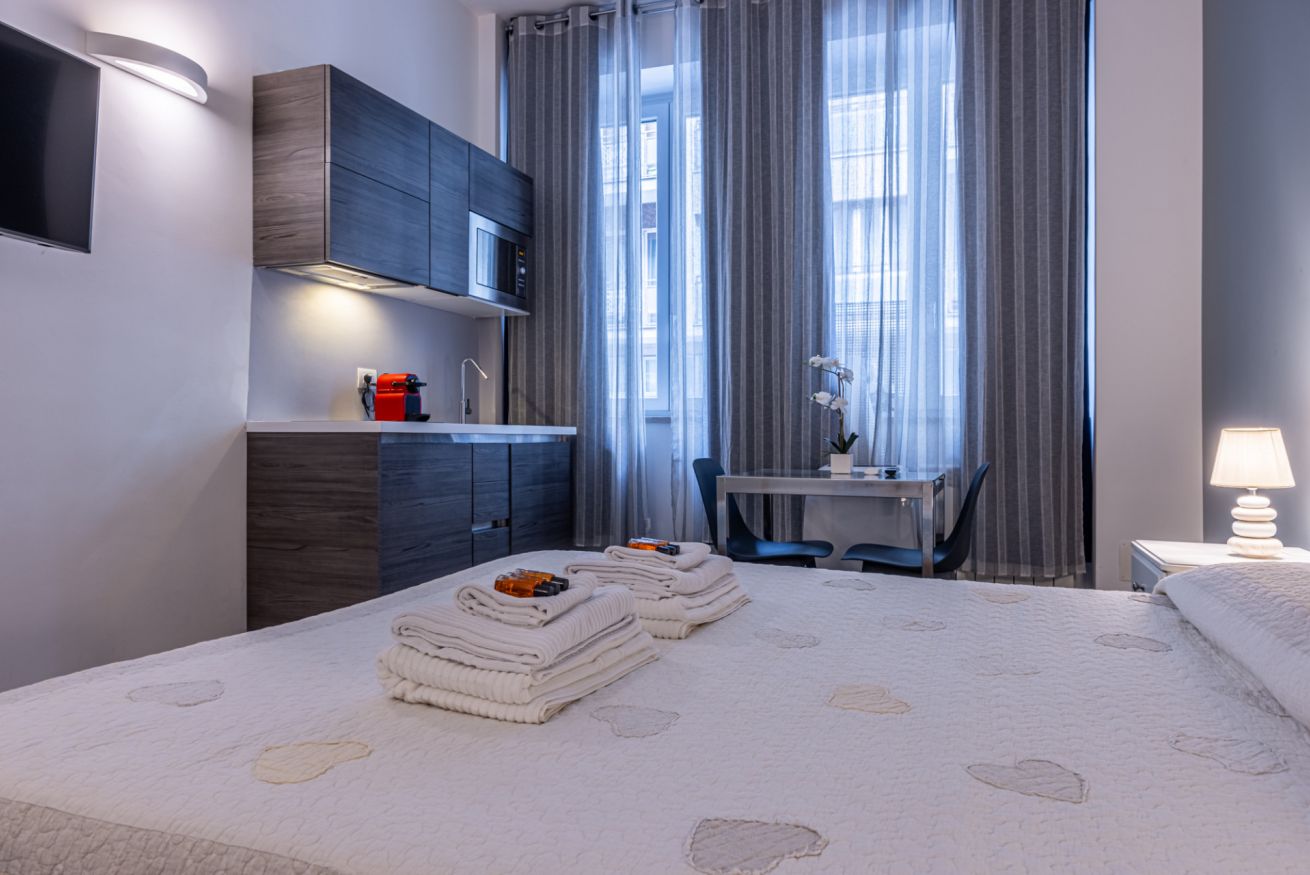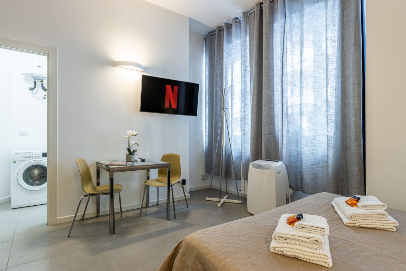 Due appartamenti monolocale composti soggiorno con letto matrimoniale, cucina a vista e smart tv e bagno con doccia.Aria condizionata, WiFi gratuitoBiancheria da bagno e da letto per ogni ospite.Zona servita da mezzi pubblici e a pochi passi dalla movida Milanese della zona Darsena e NavigliIn zona e raggiungibili a piedi si possono trovare supermercati, farmacie, ristoranti, bar e pizzerie.Check in dalle 14 in poi e anticipato se possibile.
