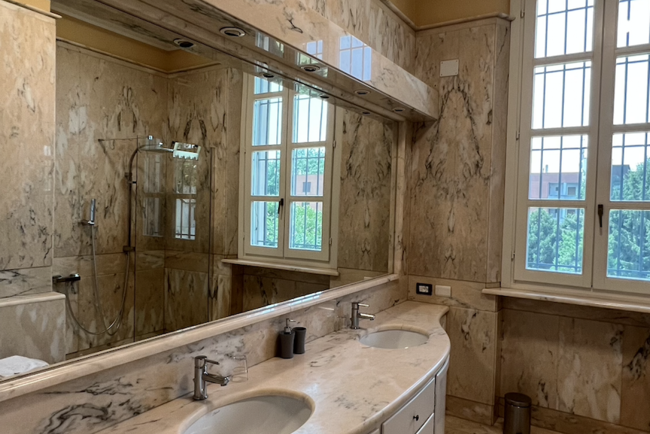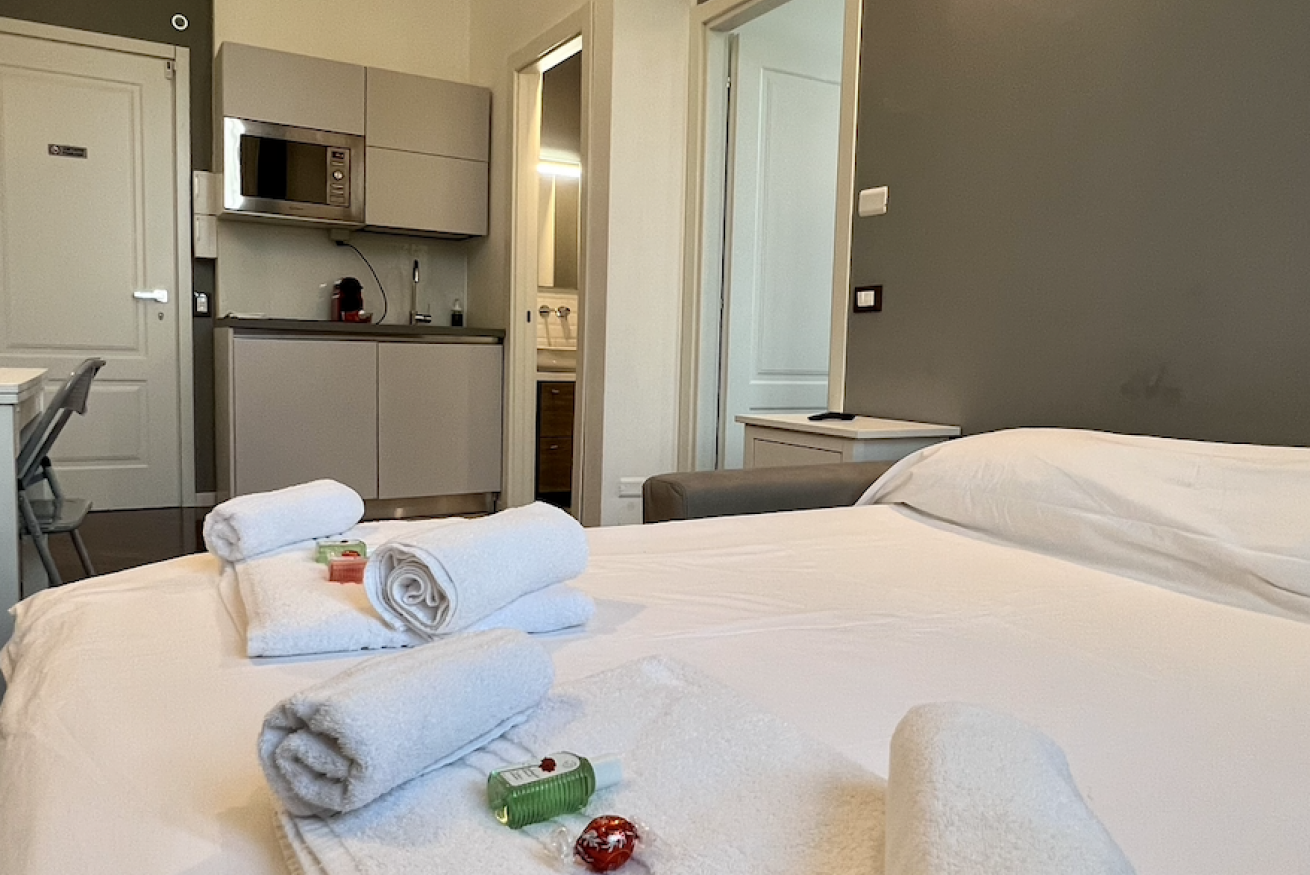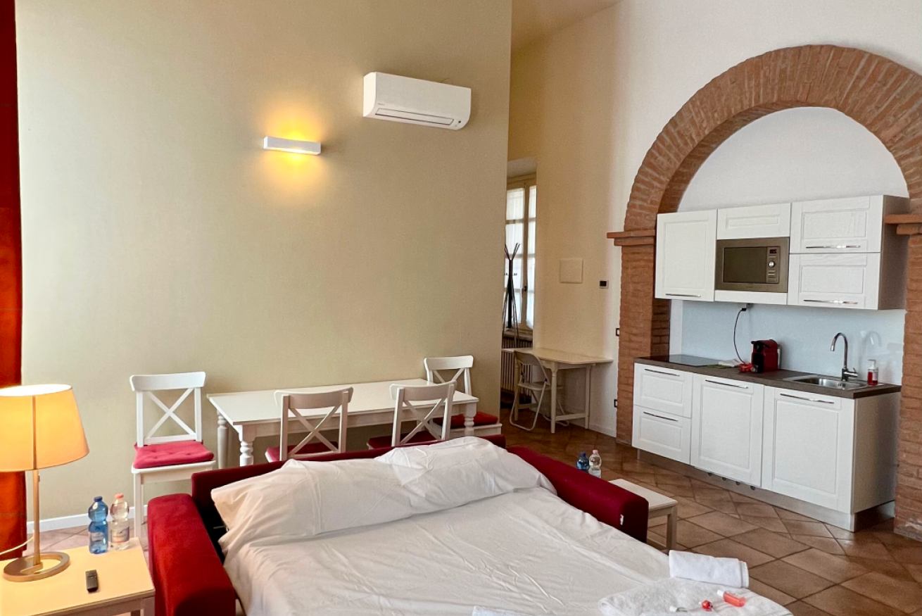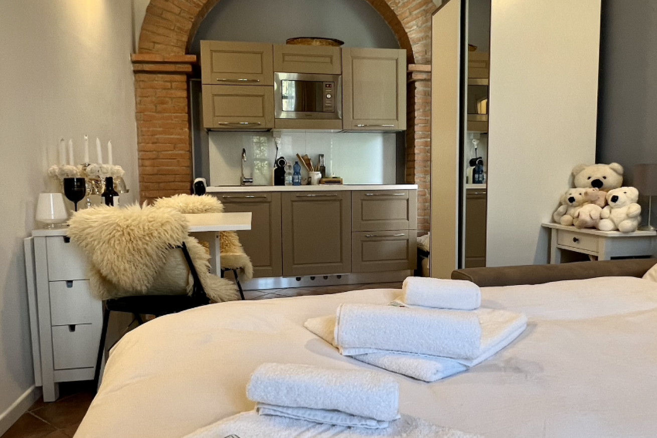 Sei appartamenti in villa antica con parco privato, servita da mezzi pubblici, nelle vicinanze strada statale e autostrade. In zona supermercati, ristoranti, bar e pizzeria. Confortevoli e completi di ogni confort (TV,Aria.C.), ognuno munito di bagno privato, soggiorno, cucina e camera da letto. Nel soggiorno divano letto a una piazza e mezza. Cucina completa di utensili. Biancheria da bagno e da letto fornita per ogni ospite. Parcheggi coperti in prossimità dell'alloggio. Check in 24H