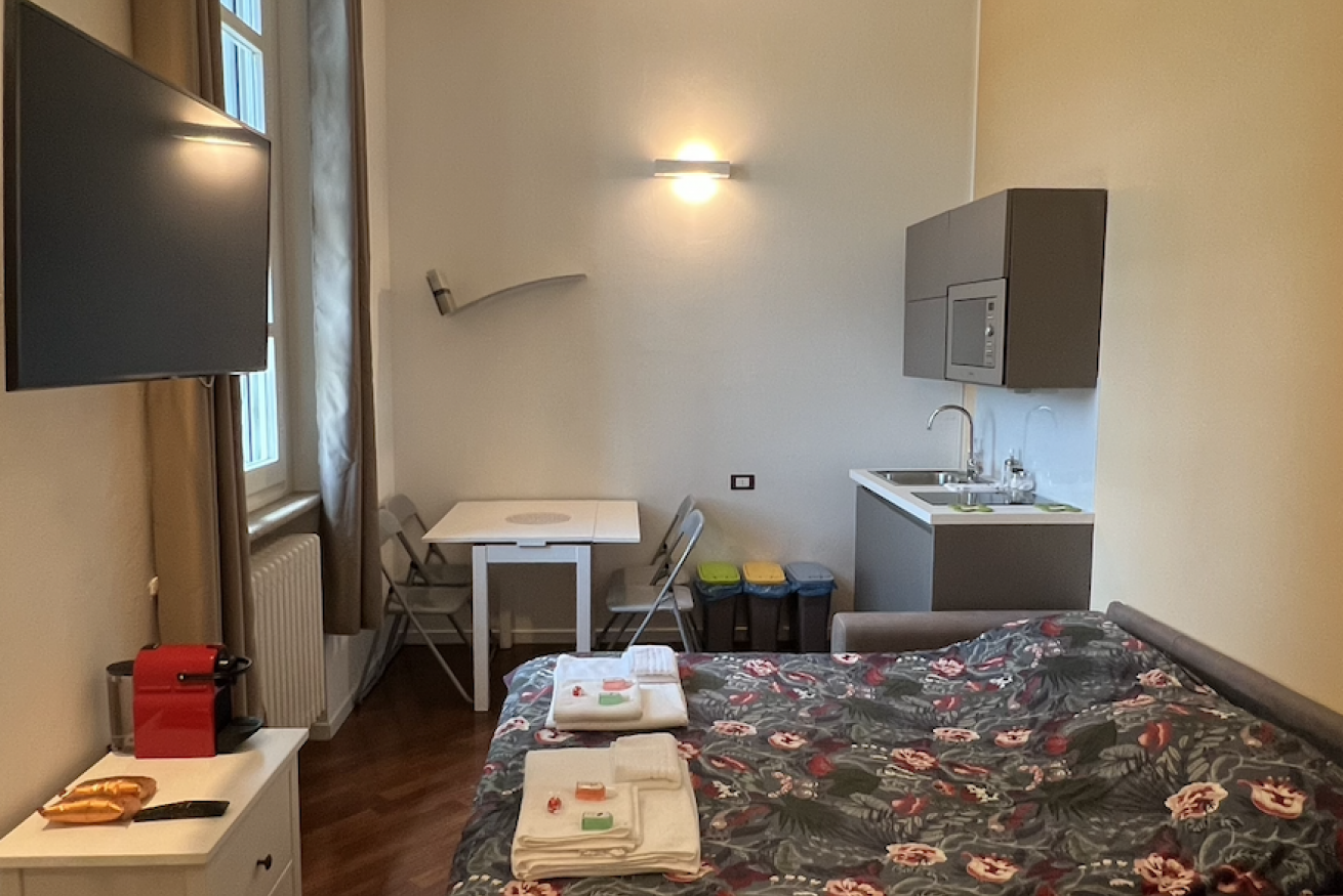 Due appartamenti monolocali in villa antica a piano terra e primo piano (con ascensore) circondati da parco privato, composti da soggiorno con cucina a vista e living room con smart tv e divano letto da una pizza e mezza oltre a bagno con doccia.Aria condizionata in ogni stanza e WiFi gratuitoPosto auto all' interno della struttura senza necessità di prenotazione e gratuti.Biancheria da letto e da bagno per ogni ospite.Zona servita da mezzi pubblici come tram con capolinea a Duomo, nelle vicinanze forum di Assago.In zona e raggiungibili a piedi si possono trovare supermercati, farmacie, ristoranti, bar e pizzerie.Check in dalle 16 in poi e anticipato se possibile inoltre automatico e a qualsiasi ora