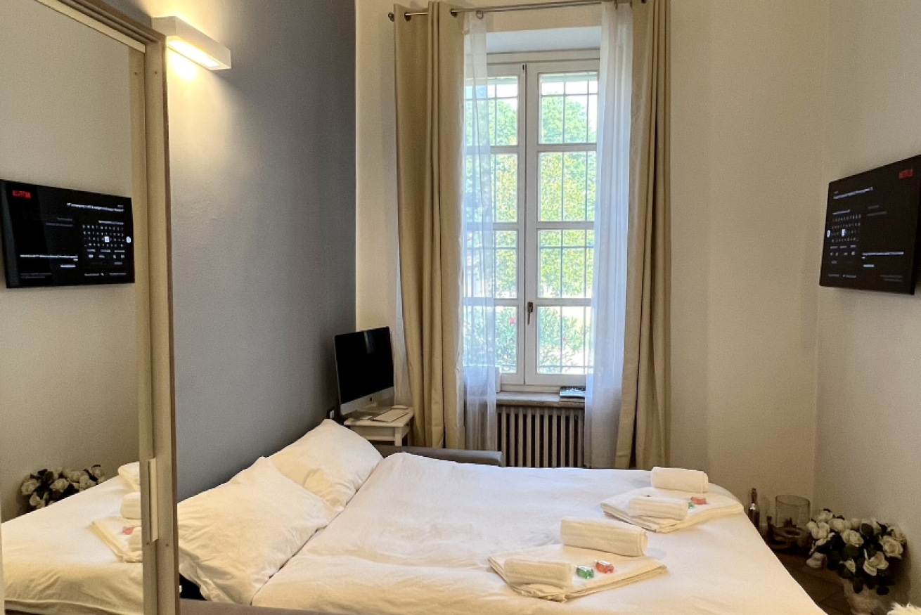 Quattro appartamenti in villa antica a piano terra e primo piano (con ascensore) circondati da parco privato, composti da camera con letto matrimoniale, soggiorno con cucina e living room con smart tv e divano letto da una pizza e mezza oltre a bagno con doccia.Aria condizionata in ogni stanza e WiFi gratuitoPosto auto all' interno della struttura senza necessità di prenotazione e gratuti.Biancheria da letto e da bagno per ogni ospite.Zona servita da mezzi pubblici come tram con capolinea a Duomo, nelle vicinanze forum di Assago.In zona e raggiungibili a piedi si possono trovare supermercati, farmacie, ristoranti, bar e pizzerie.Check in dalle 16 in poi e anticipato se possibile inoltre automatico e a qualsiasi ora